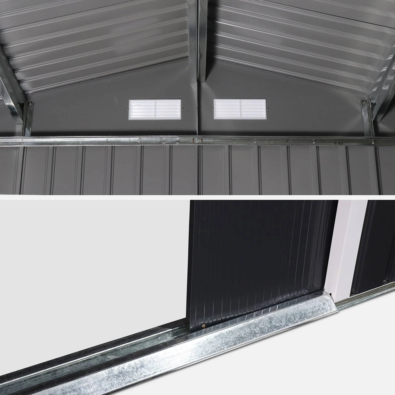 Sa structure en panneaux laqués en acier galvanisé à chaud rend cet abri résistant à l’usure et au mauvais temps, tandis que son toit épais lui, assure une bonne longévité. Le cadre en métal vient stabiliser le tout pour le rendre solide et robuste. Pour visser votre abri au sol, un kit de fixation (cornières métal et chevilles béton) vous ait founi.