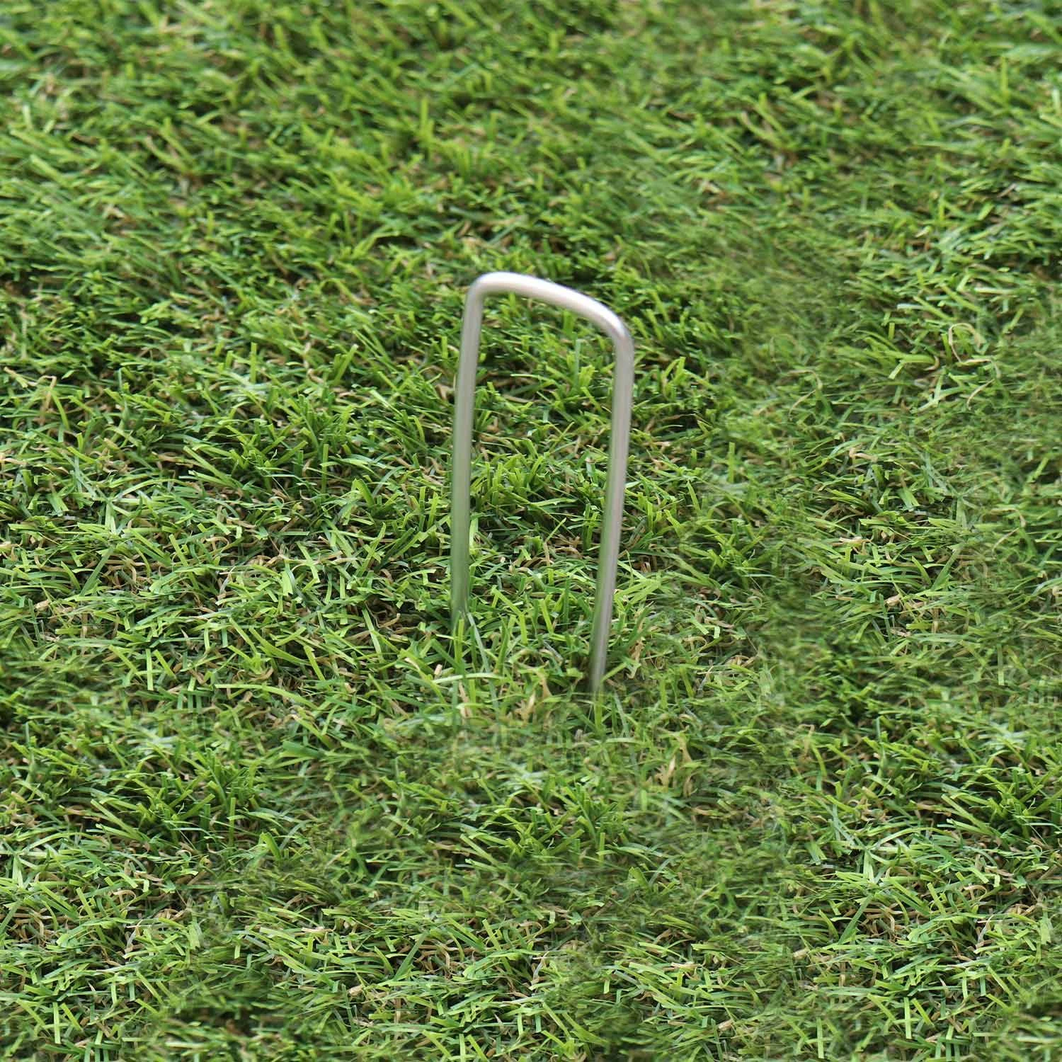 Ce lot de 20 agrafes permet de fixer le film géotextile et la pelouse synthétique dans votre sol. En acier galvanisé, ces agrafes à gazon résistent à la température et à l’humidité et sont invisibles une fois placées.