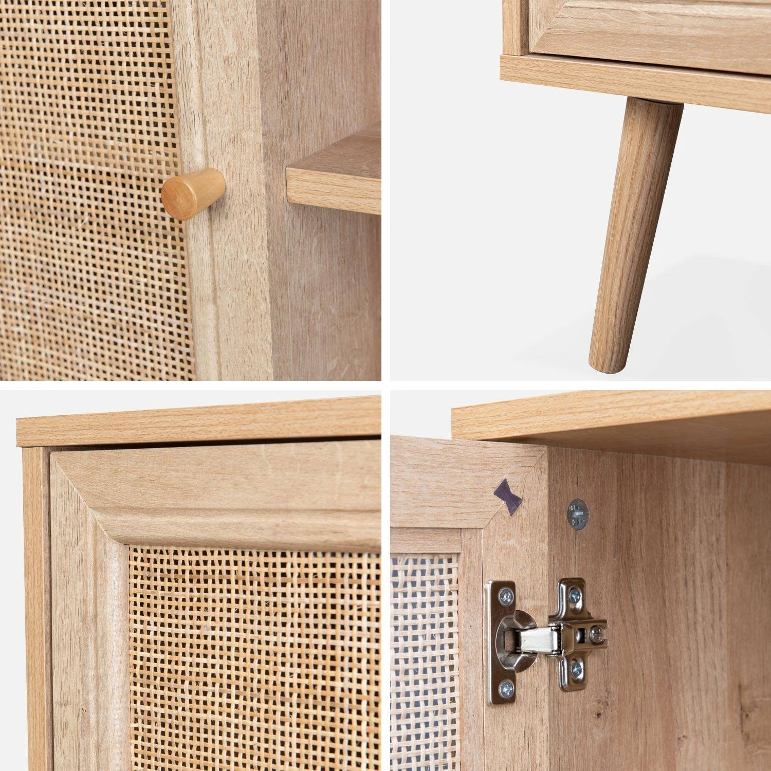 L’esprit nature s’invite dans votre intérieur avec ce meuble de rangement au charme bohème. Avec sa porte en cannage et sa structure en décor bois, il combine élégance et authenticité. Ses pieds compas scandinave en font un meuble au look rétro qui deviendra vite la nouvelle pièce maîtresse de votre intérieur.