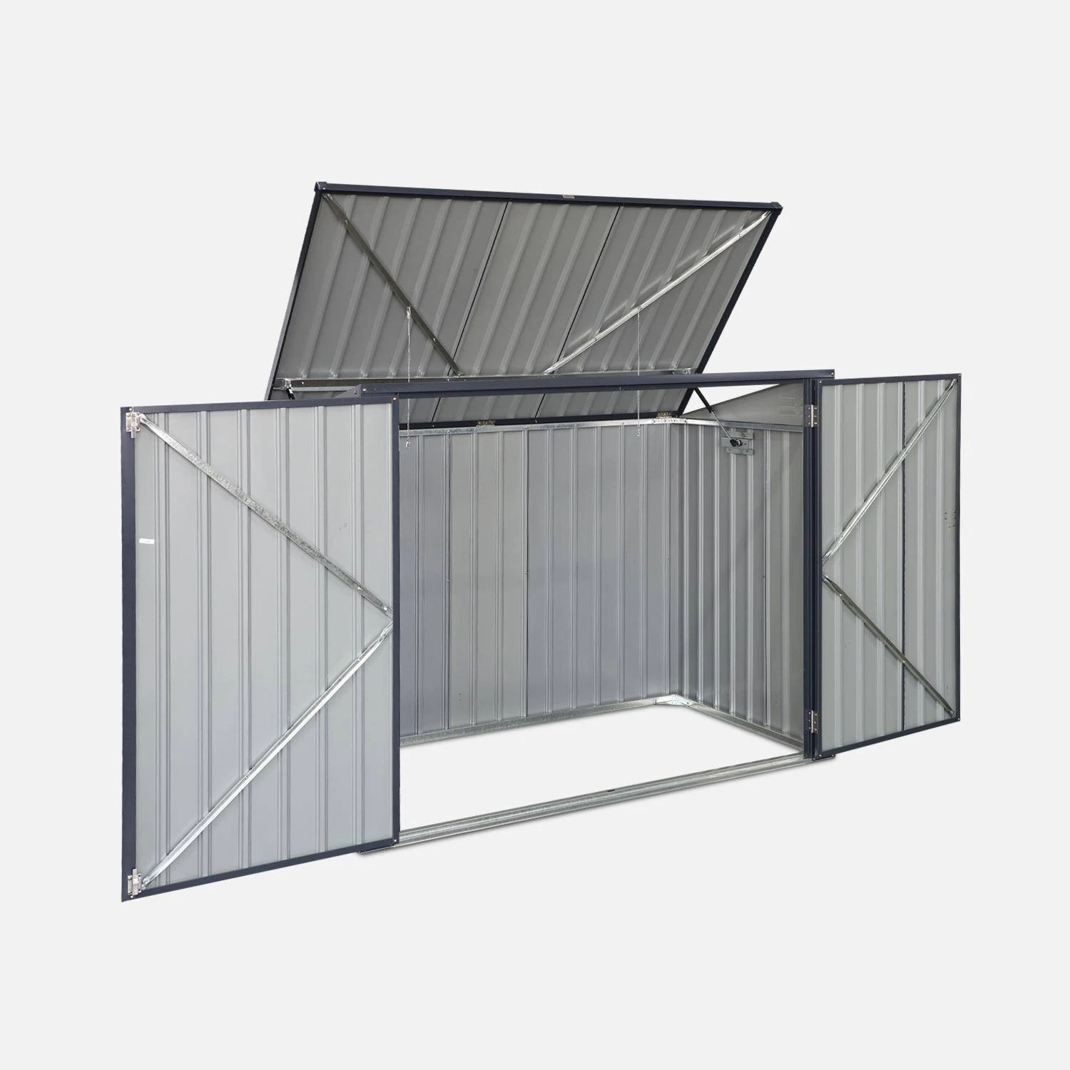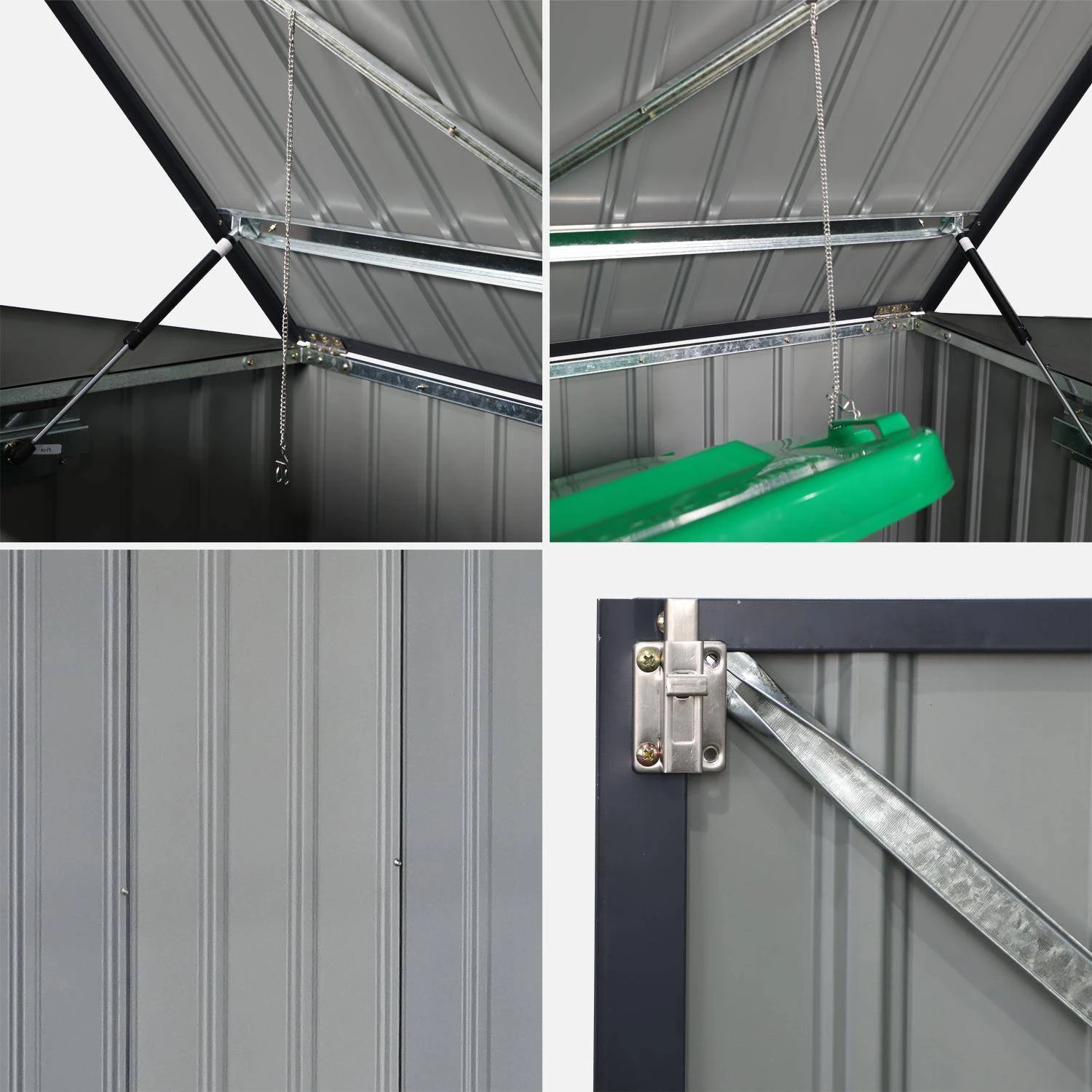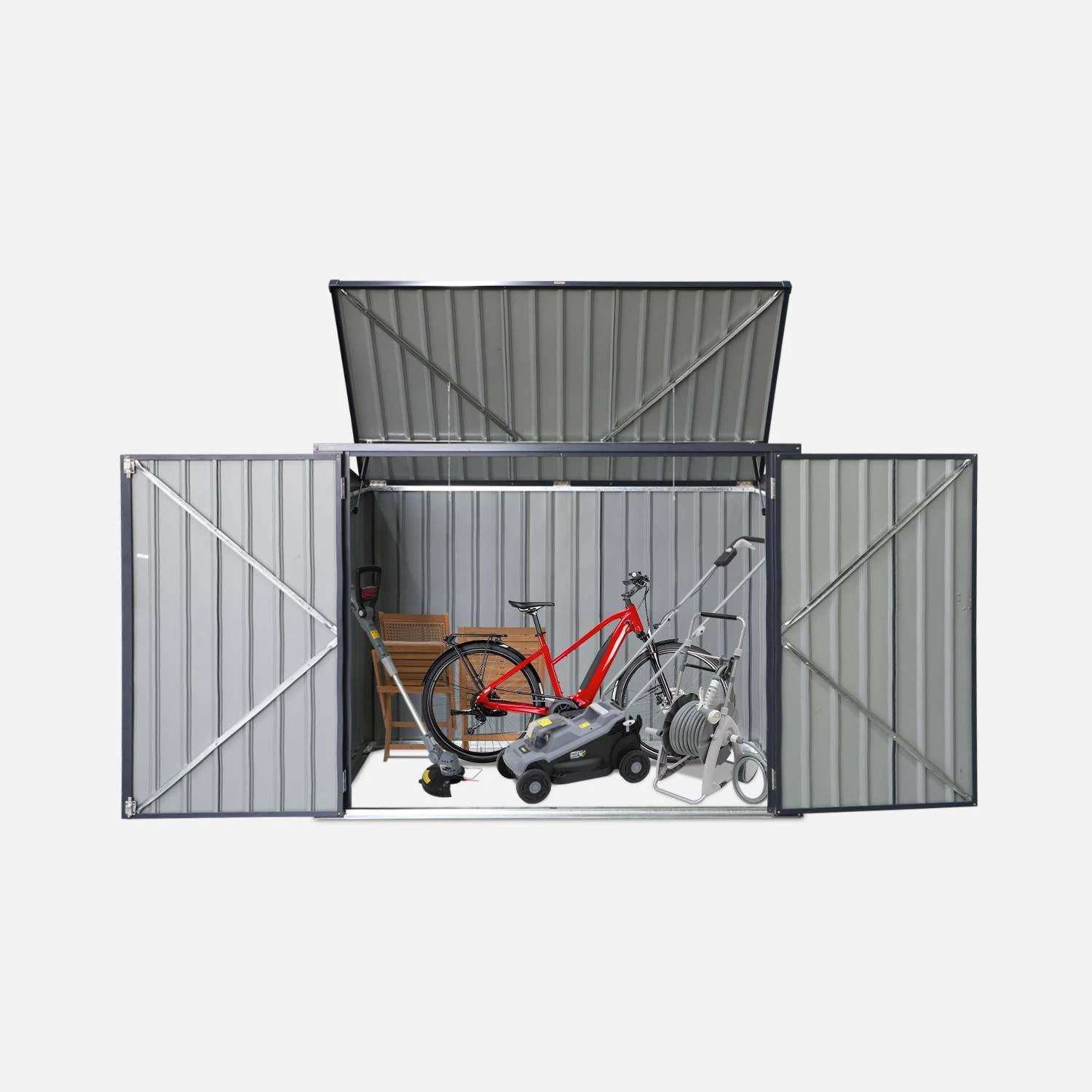 Le cache poubelle. Simple et efficace, comme son nom l’indique il permet de cacher vos poubelles de manière esthétique, tout en les abritant des intempéries. Avec son toit ouvrable directement relié au couvercle de votre poubelle, il vous facilite la vie. Votre jardin est débarrassé et on s’y sent tout de suite mieux. Véritable couteau suisse du rangement il peut également être utilisé comme abri de jardin. Vélos, outils de bricolage ou de jardinage et même votre tondeuse pourront y trouver leurs places.