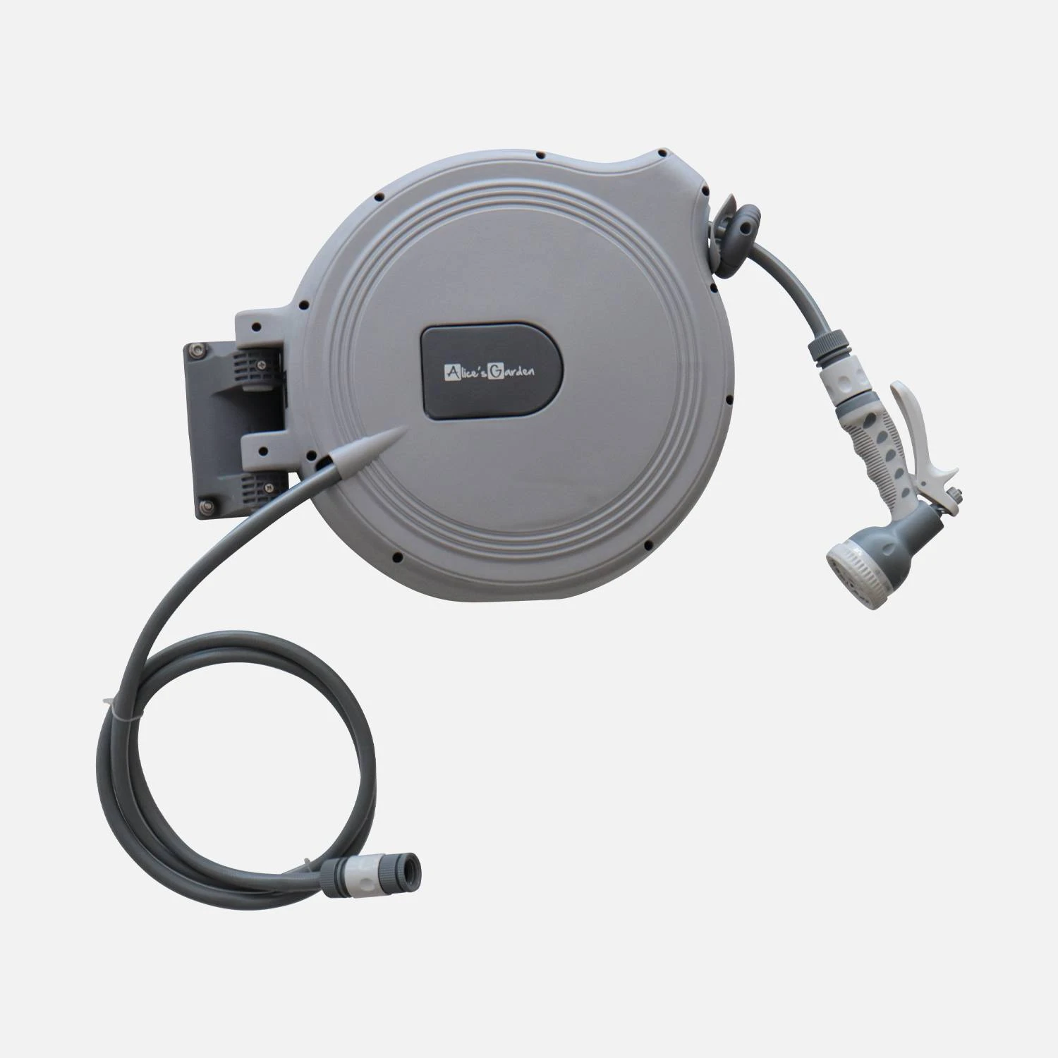 Ce dévidoir mural auto-enroulant est très pratique. En effet, il s’adapte à vos besoins grâce à son tuyau d’arrosage de 30m, qui peut être bloqué à n’importe quelle longueur. Il pivote à 180 ° en fixation murale, pour arroser votre jardin dans la direction souhaitée.