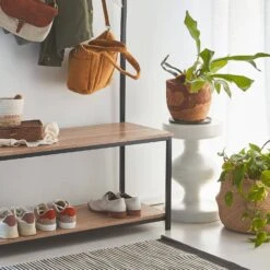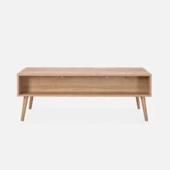 Table Basse Scandinave Décor Bois Rainuré 2 Niches, 1 Tiroir Couleur : Naturel