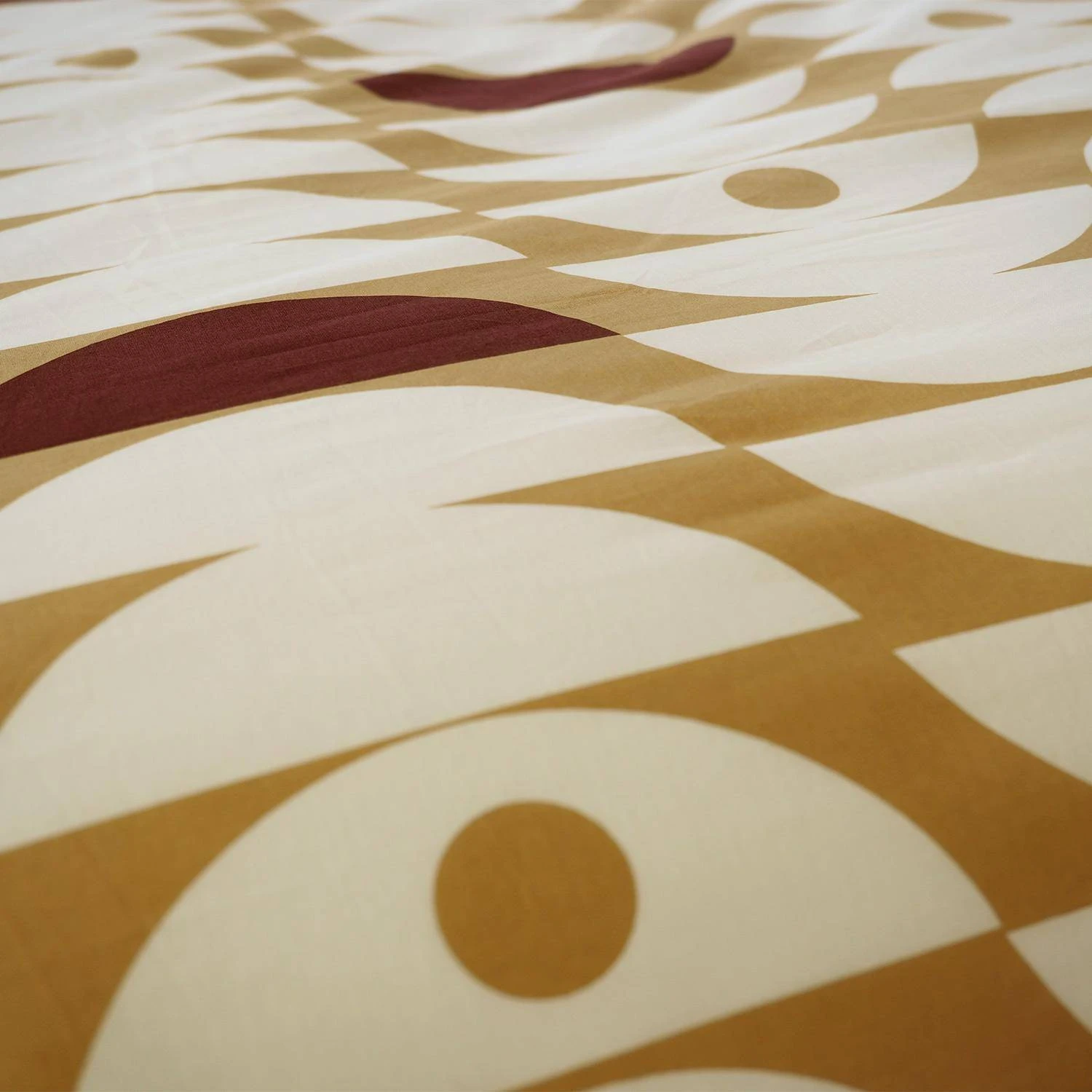 Habillez votre lit avec cette jolie parure de lit au motif demi-lunes. Réversible, vous pourrez choisir entre le côté uni moutarde ou le côté à motif.