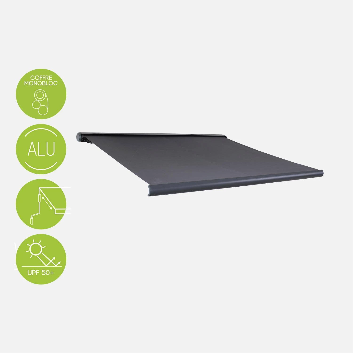 Ce produit est destiné à protéger de légères pluies et de créer de l’ombre. Il ne peut pas être déployé de façon permanente afin de ne pas risquer une prise au vent trop importante qui pourrait endommager le produit.