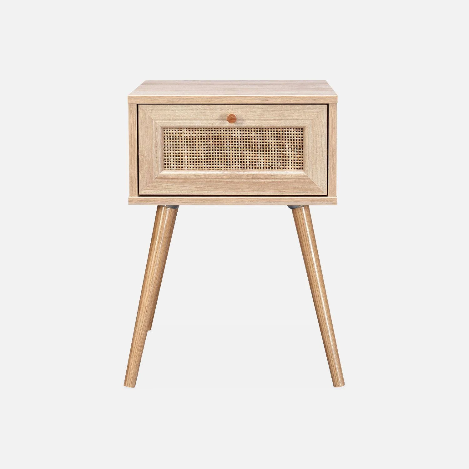 Avec sa touche vintage, cette table de chevet a tout pour vous plaire. Ce petit meuble élégant pourra accueillir votre réveil, une jolie lampe et tout ce que vous avez besoin près de votre lit. Son petit plus ? Son tiroir qui apporte une touche de cannage discrète et qui vous permet de ranger tout votre petit bazar, parfait pour créer un joli coin de nuit dans votre chambre.