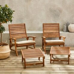 Chaise De Jardin En Bois Et Corde Avec Repose Pieds Couleur : Noir