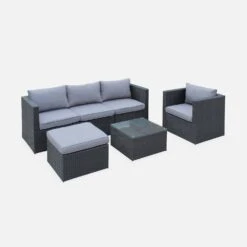 Salon De Jardin Résine Tressée 5 Places Couleur : Noir / Gris